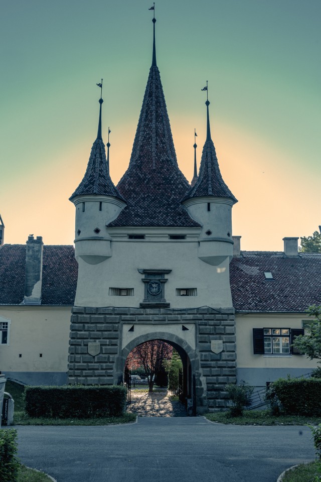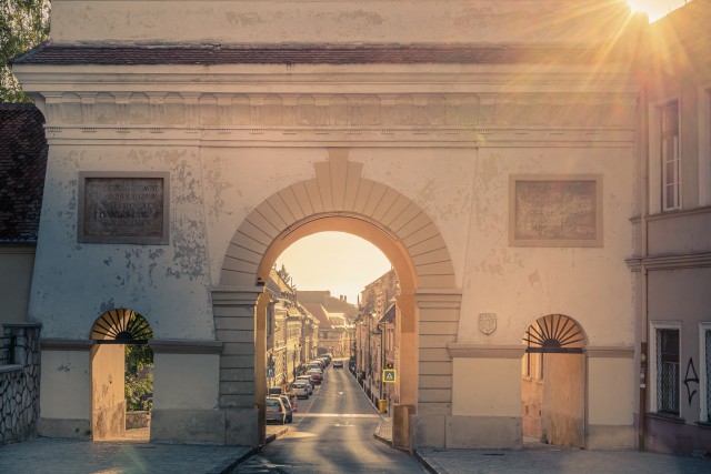 Kolmest kaarest koosnev Shay värav Brasovi linnas Rumeenias